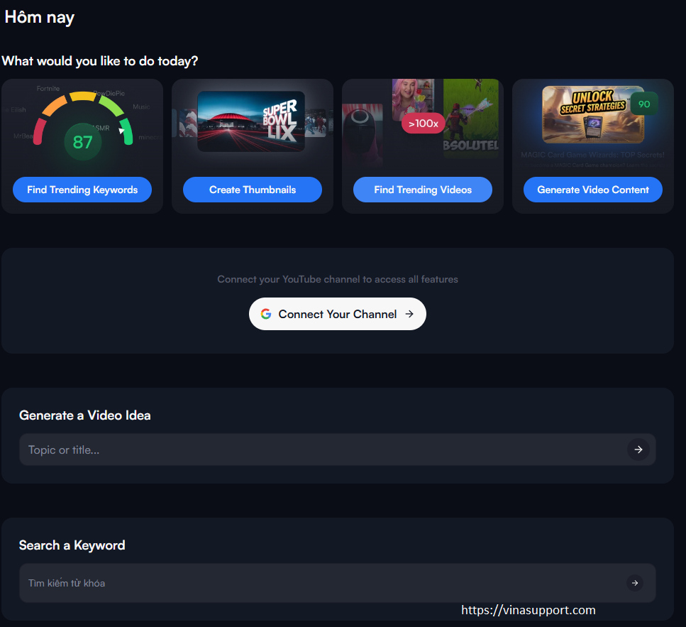 - YouTube Video Ideas – Đưa ra ý tưởng video mới theo chủ đề và xu hướng.