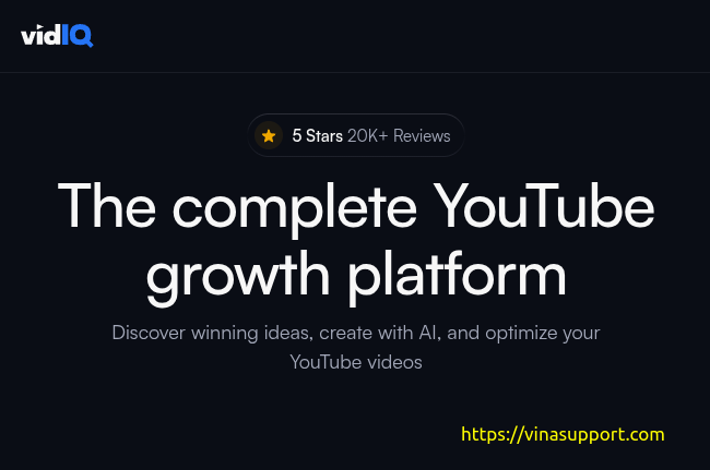 vidIQ mang đến bước đột phá cho các nhà sáng tạo YouTube với sự kết hợp giữa phân tích dữ liệu, SEO và công cụ AI tiên tiến. Đây là trợ thủ đắc lực giúp bạn tăng trưởng nhanh chóng và bền vững. Đừng quên tận dụng mã giảm giá vidIQ mà vinasupport.com đã cung cấp ở trên để sở hữu công cụ này với chi phí tối ưu và bắt đầu hành trình phát triển kênh chuyên nghiệp ngay hôm nay!